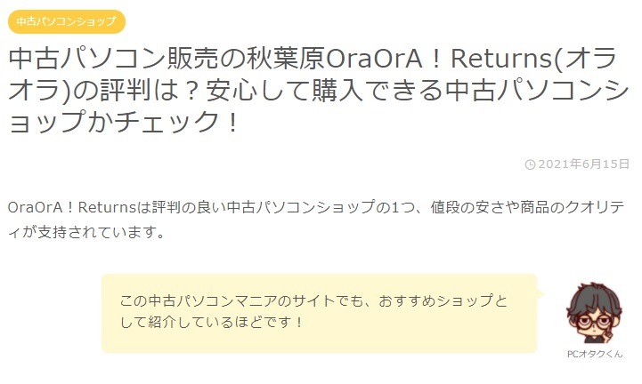 パソコンの買い方やおすすめポイントを紹介している『中古パソコンマニア』にてOraOrA!が紹介されました!
